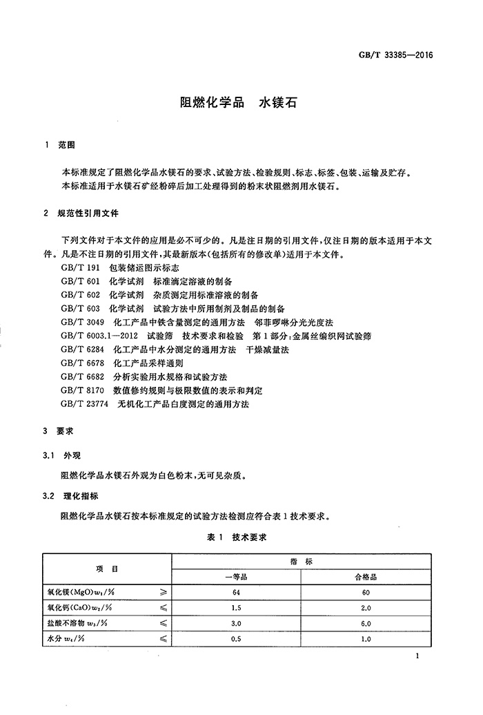 我司參與起草的GB/T33385-2016《阻燃化學(xué)品水鎂石》標(biāo)準(zhǔn) 于2017年4月頒布實(shí)施
